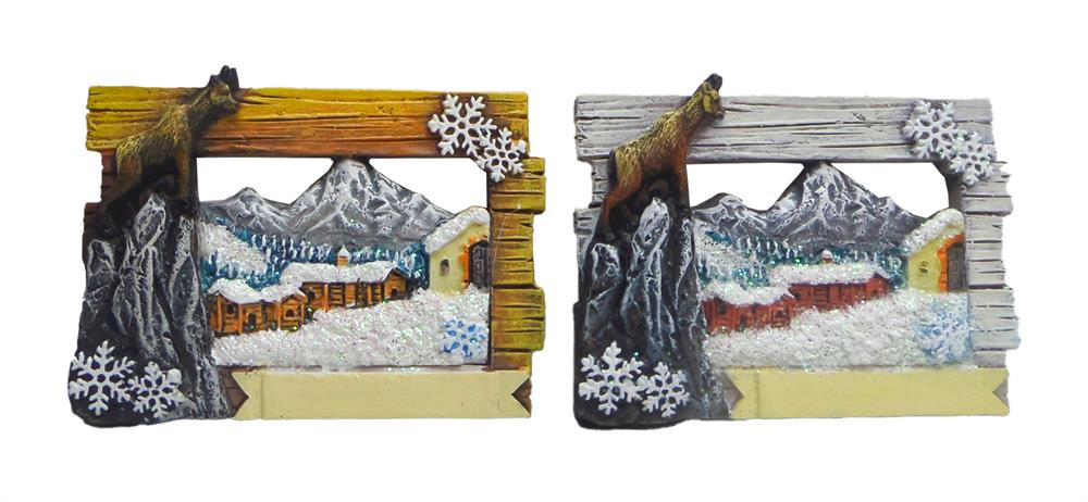 Magnet Winter Bild mit Steinbock, Berge, Schnee, 2 assortiert