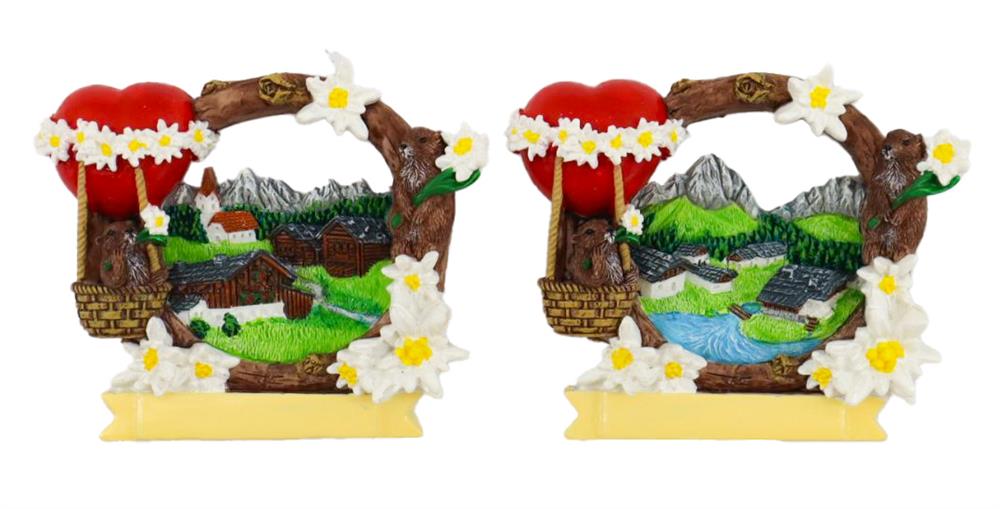 Magnet Sommer mit Murmeltier und Herz, 7.5x6.5cm, 2 assortiert