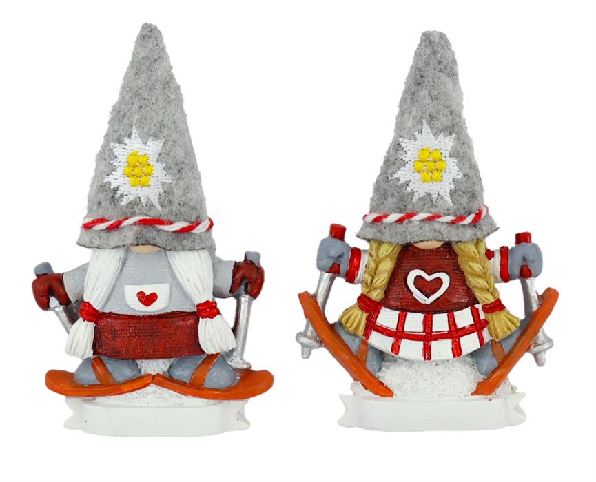 Magnet Skifahrer Gnom, lange Haare, 5.5x8.5cm, 2 assortiert