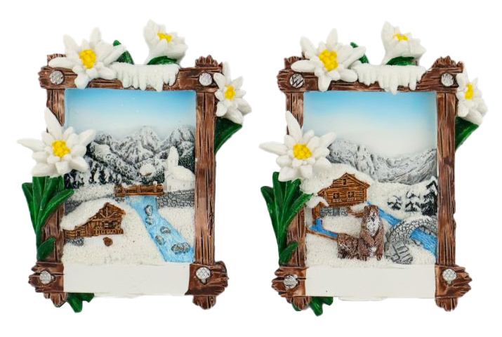 Magnet Bild Winter mit Edelweiss, 5x7.5cm, 2 assortiert