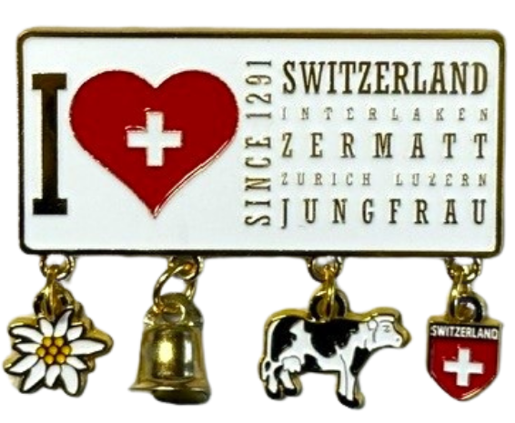 Metall Magnet I love Switzerland, Since 1291 mit Charms, gold