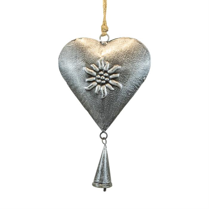 Metallherz silber mit Glocke, 24 x 15 x 3cm