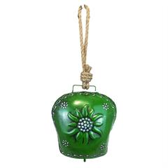 Metall Glocke grün mit Edelweiss zum aufhängen, 15 x 14 x 9cm