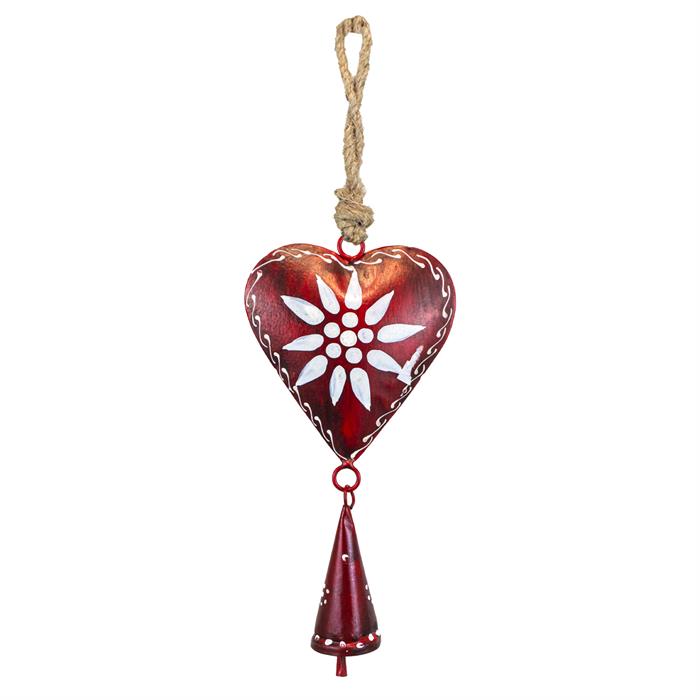 Metallherz rot mit Glocke zum aufhängen, 19 x 10 x 3cm