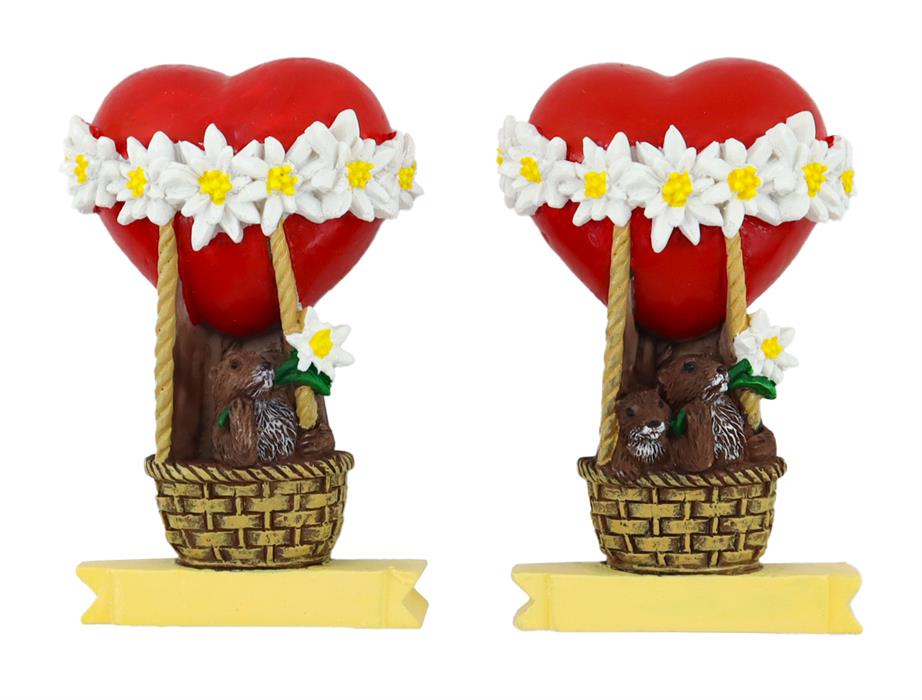 Magnet Ballon Herz mit Murmeltier, 7x7cm, 2 assortiert