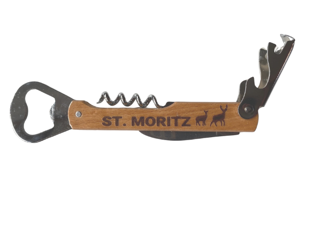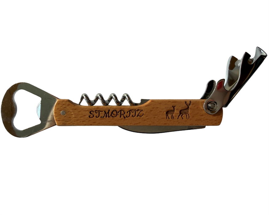 Flaschenöffner aus Buche und Edelstahl mit 3 Fuktionen: