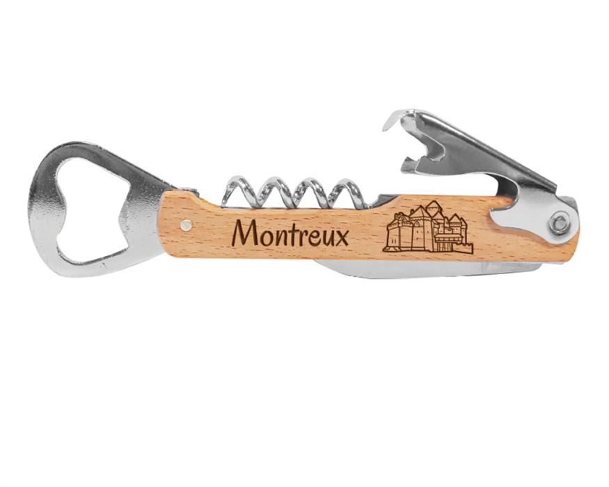 Flaschenöffner Buche, mit Montreux und Schloss Chillon