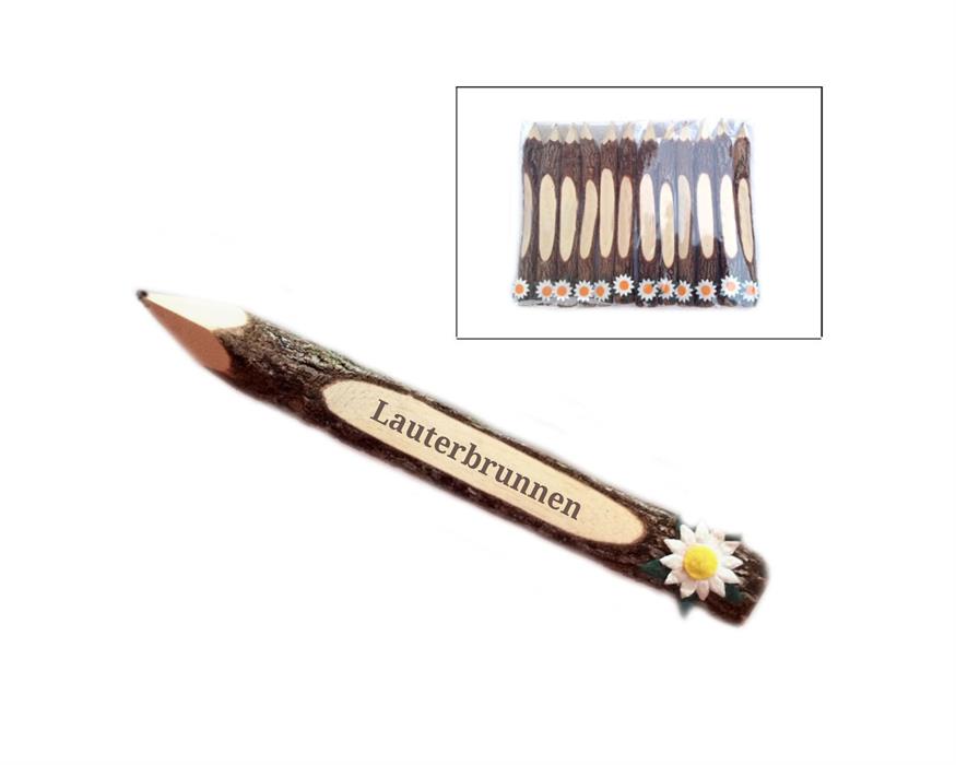 Rinde Bleistift Edelweiss, 18cm mit Ortsnamen Gravur Lauterbrunnen, VE 48 Stk.