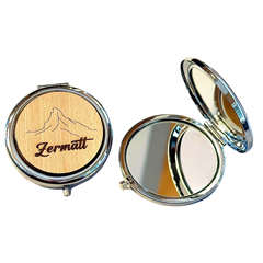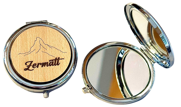 Taschenspiegel mit Holzdeckel, mit Gravur Zermatt