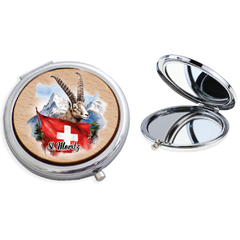 Taschenspiegel mit Holzdeckel, Steinbock, St. Moritz