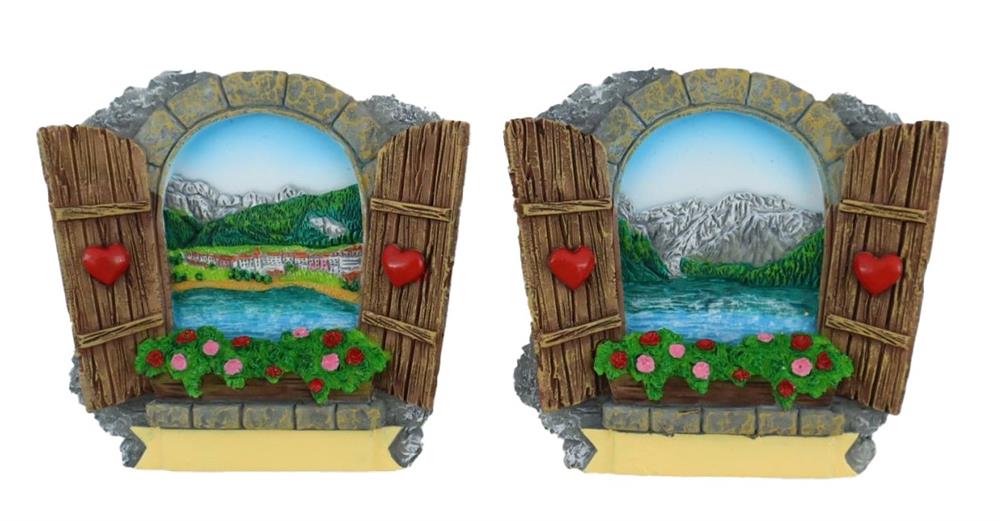 Magnet Sommer Fenster mit Berg und Talausblick, 2 assortiert