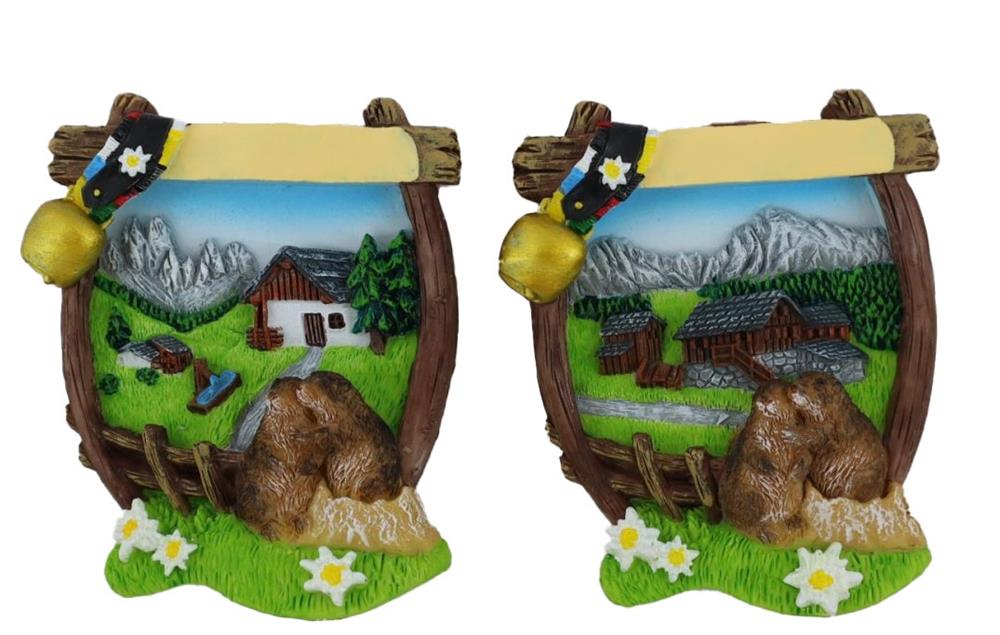 Magnet Sommer Murmeltier mit Almhütte, 2 assortiert