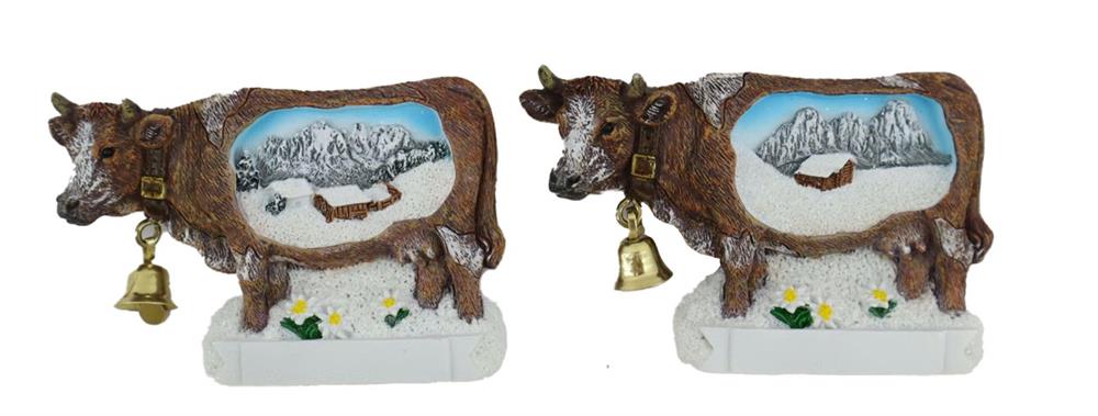 Magnet Winterrlandschaft braune Kuh, 5x6.5cm, 2 assortiert