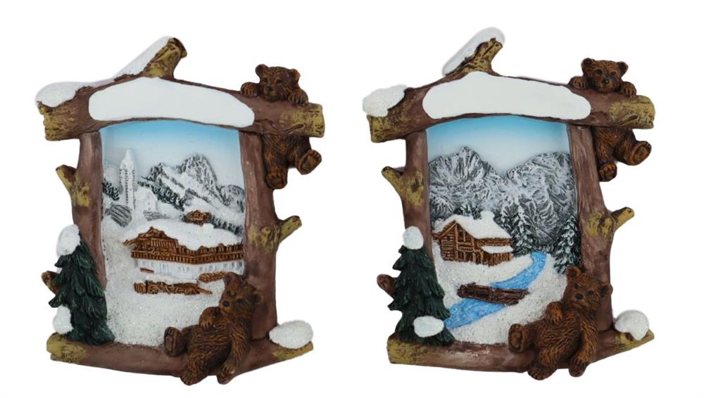 Magnet Winter Holzrahmen mit Schneehütte, 2 assortiert