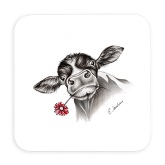 Untersetzer Kuh mit Blume, 9x9cm