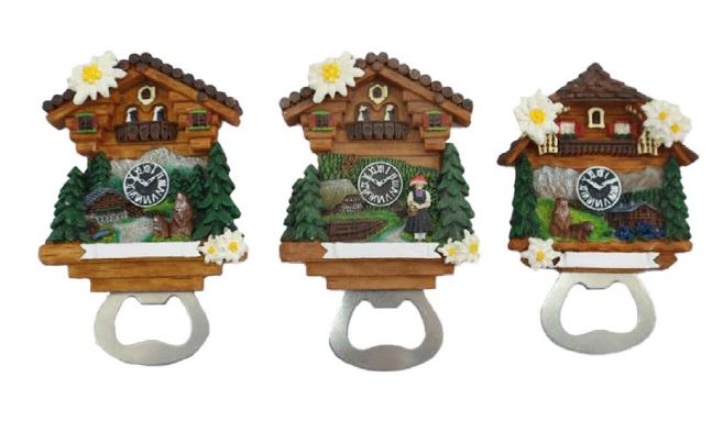 Magnet Sommer Kuckucksuhr mit Flaschenöffner, 3 assortiert