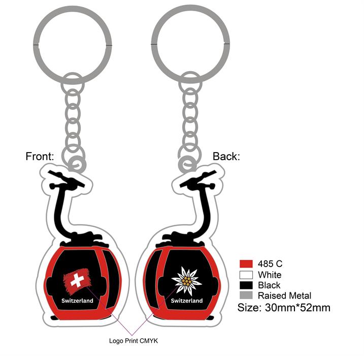 Schlüsselanhänger Kabine Schweiz, beidseitig geprägt und bedruck