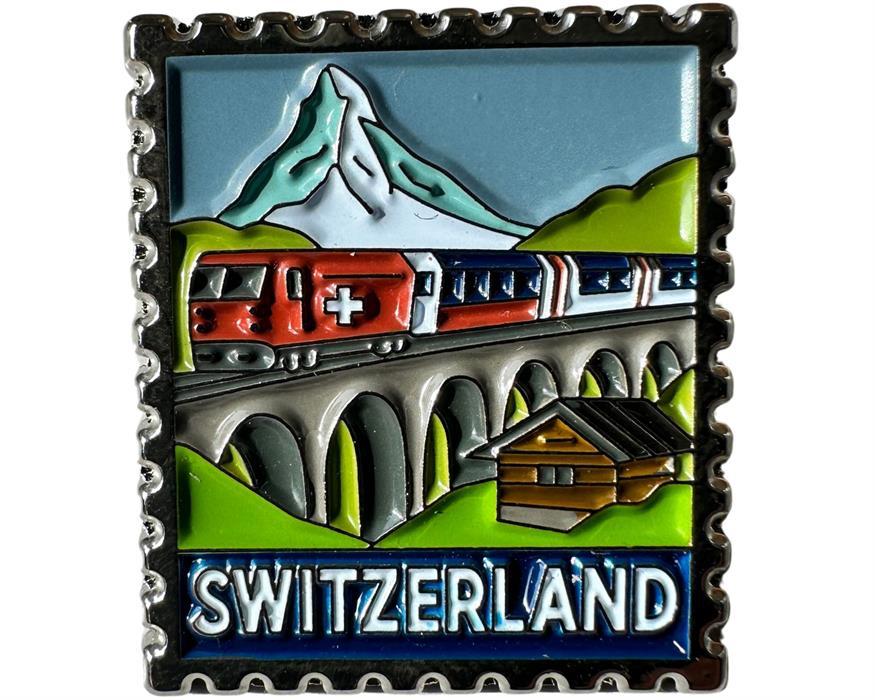 Pin Briefmarke Switzerland Matterhorn mit Zug, 25mm