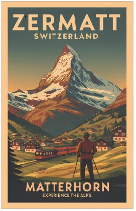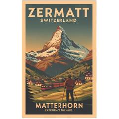 Holz Magnet Zermatt Matterhorn Dorf, Vintage 62x37mm