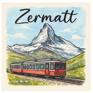 Holz Magnet Zermatt Matterhorn Zug, 33x33mm