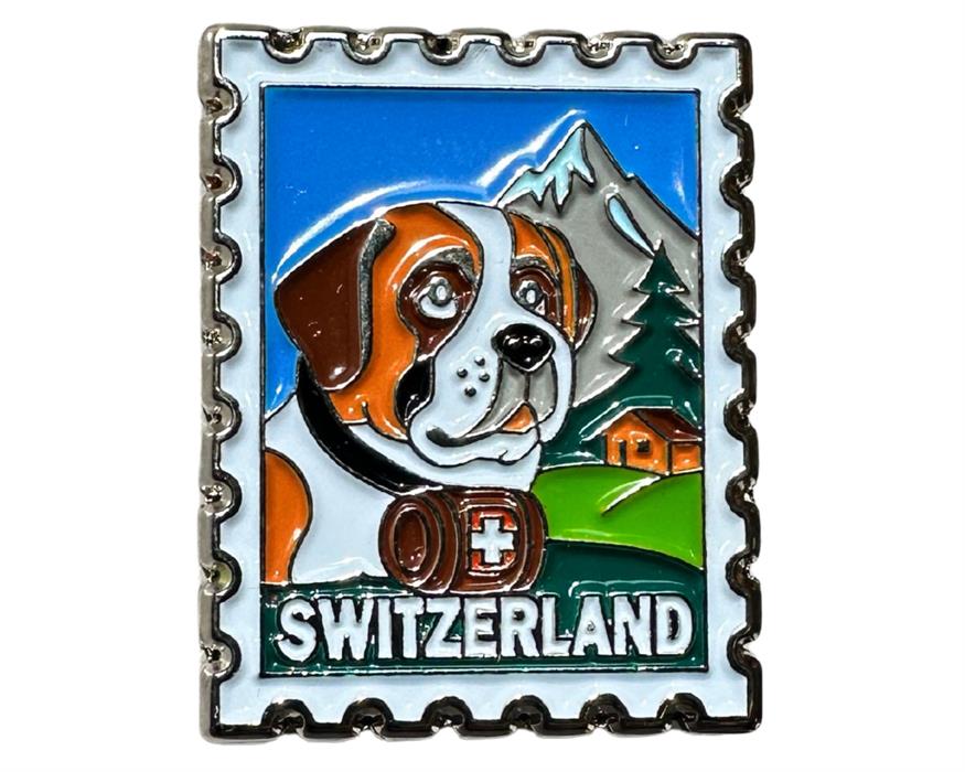 Pin Briefmarke Bernhardiner Switzerland, 25mm