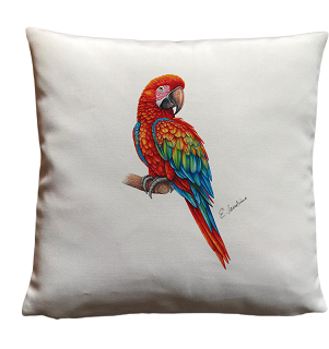 Kissen Papagei, Leinenhaptik, 40 x40cm