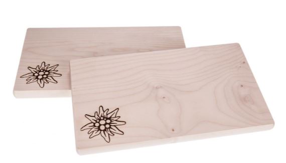 Mit dekorativem Edelweiss Branddruck-Motiv und praktischer Grösse (26 × 15 × 1.5 cm).