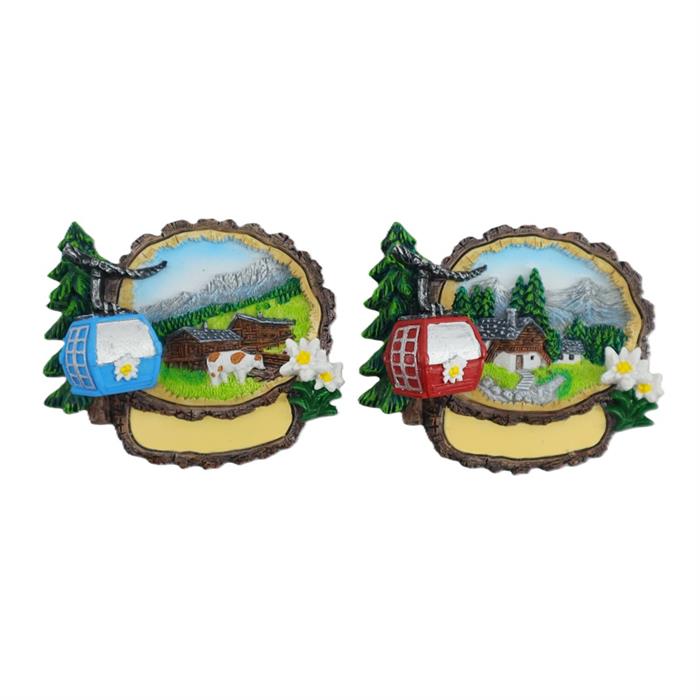 Magnet Sommerlandschaft in Holzrinde mit Gondel, 2 assortiert