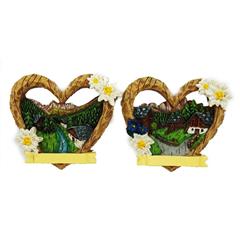 Magnet Herzförmig Landschaft mit Edelweiss, 2 assortiert