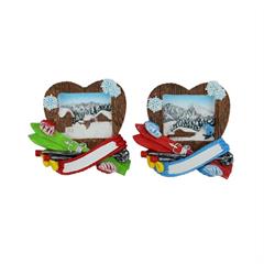 Magnet Winterlandschaft auf Holzherz mit Ski, 2 assortiert