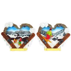 Magnet Winterlandschaft in Holzherz und Ski, 2 assortiert