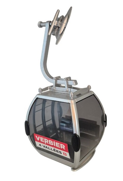 Bestehend aus JC 84000 plus Kleber VerbierTélécabine Omega IV pour 8 personnes en argent avec le logo de Verbier.