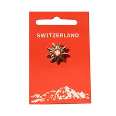 Pin Goldblume ® Schweiz-Tourismus, auf Kärtchen