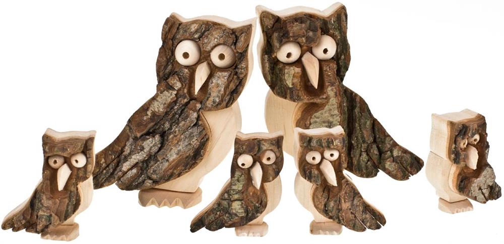 Handgefertigte Eulen aus Erle mit natürlicher Rind ca. 13 cm