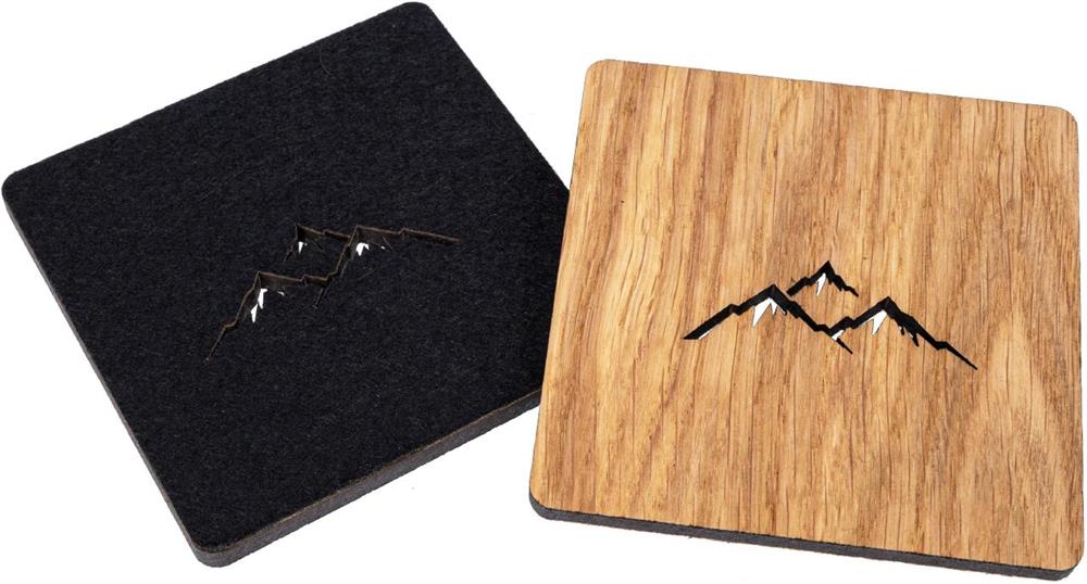 Eichenholz-Untersetzer FSC® mit Filzrücken und Berge-Ausschnitt