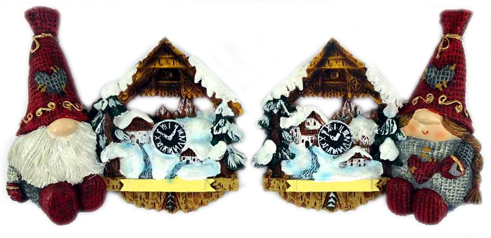 Magnet Gnom mit Kuckucksuhr, 2 assortiert