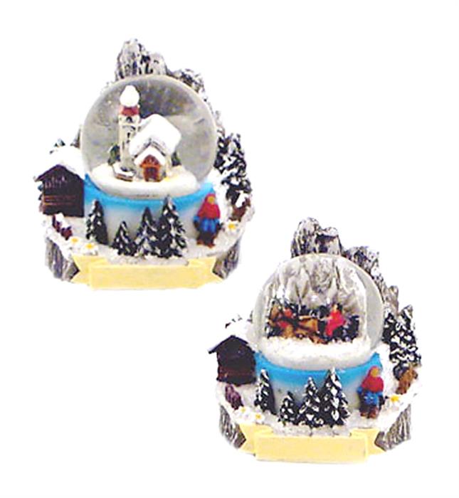 Schneekugel Winter Kapelle und Kutsche, 2 assortiert.