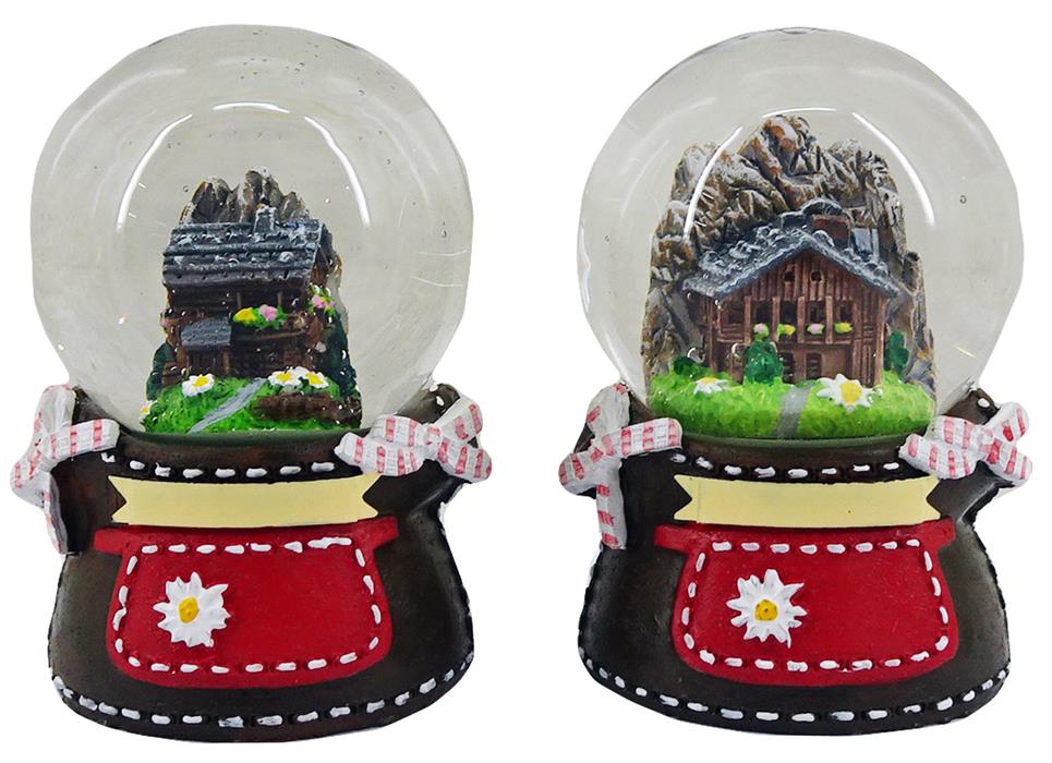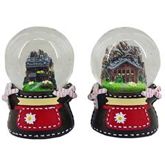 Schneekugel ähnelt einer Schürze, mit Chalets, 2 assortiert.