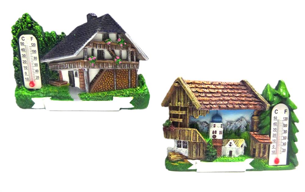 Magnet Sommer Häuser mit Thermometer, 2 assortiert